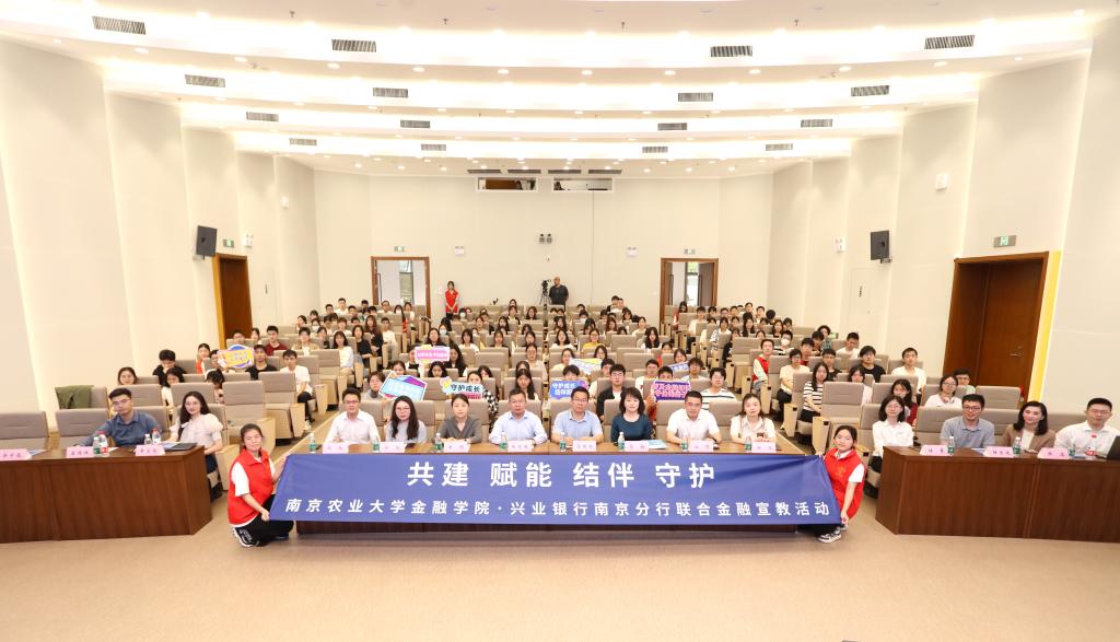 6月7日下午,南京农业大学万博体育 与兴业银行联合举办金融宣教活动。人民银行南京分行营业管理部办公室副主任郭传辉、人民银行南京分行营业管理部法律事务科科长蔡敏、南京市玄武区金融局局长王娟、共青团南京市玄武区委副书记张倩、兴业银行南京分行消保办负责人沃野、兴业银行南京分行人力资源部总经理助理徐迎、南京市结伴前行青年志愿服务中心发起人黄玺澄,南京农业大学万博体育 院长张龙耀、党委副书记朱珠出席,兴业银行南京分行职工代表、万博体育 师生代表、南京市同读好书共芸窗大学生就业服务中心代表等参加。